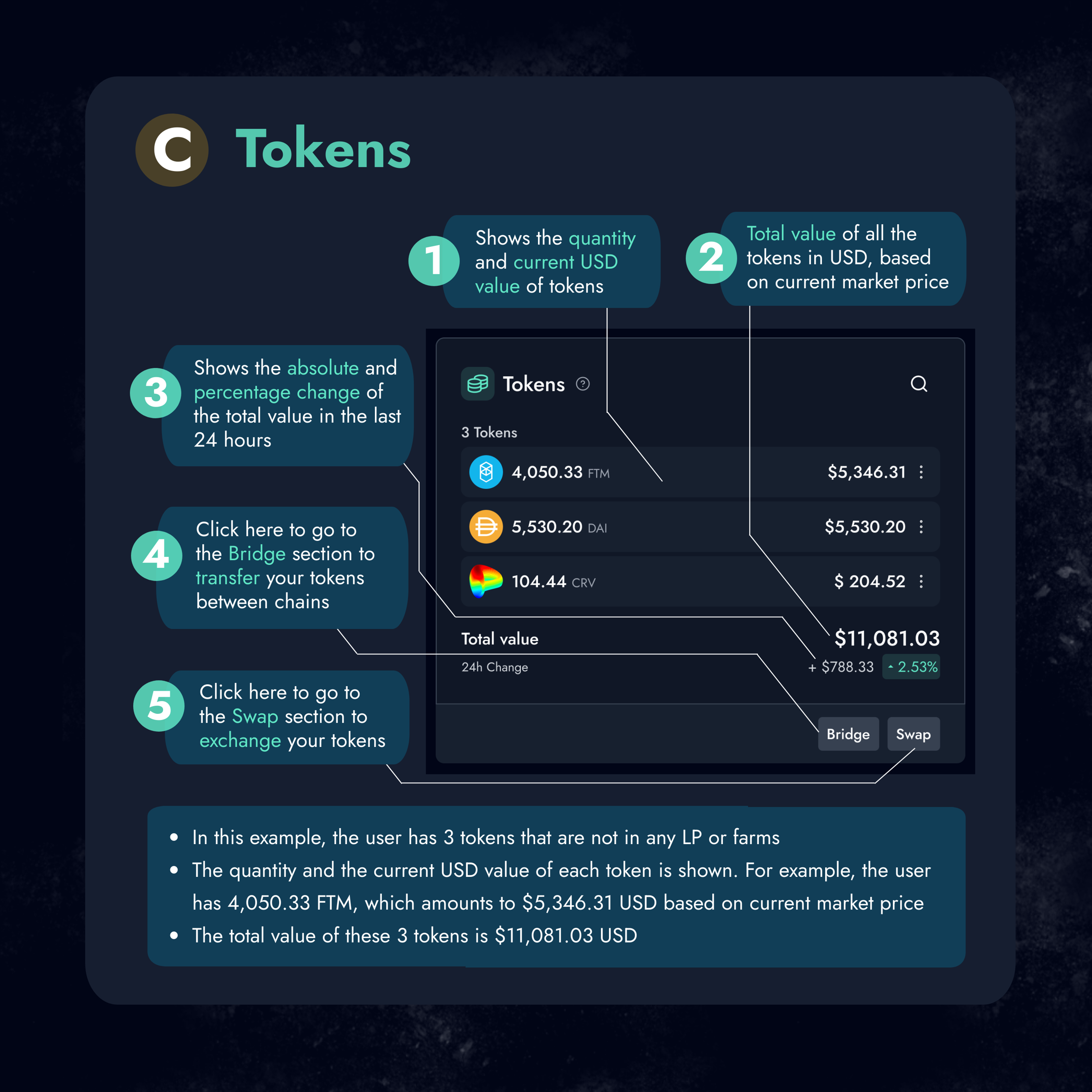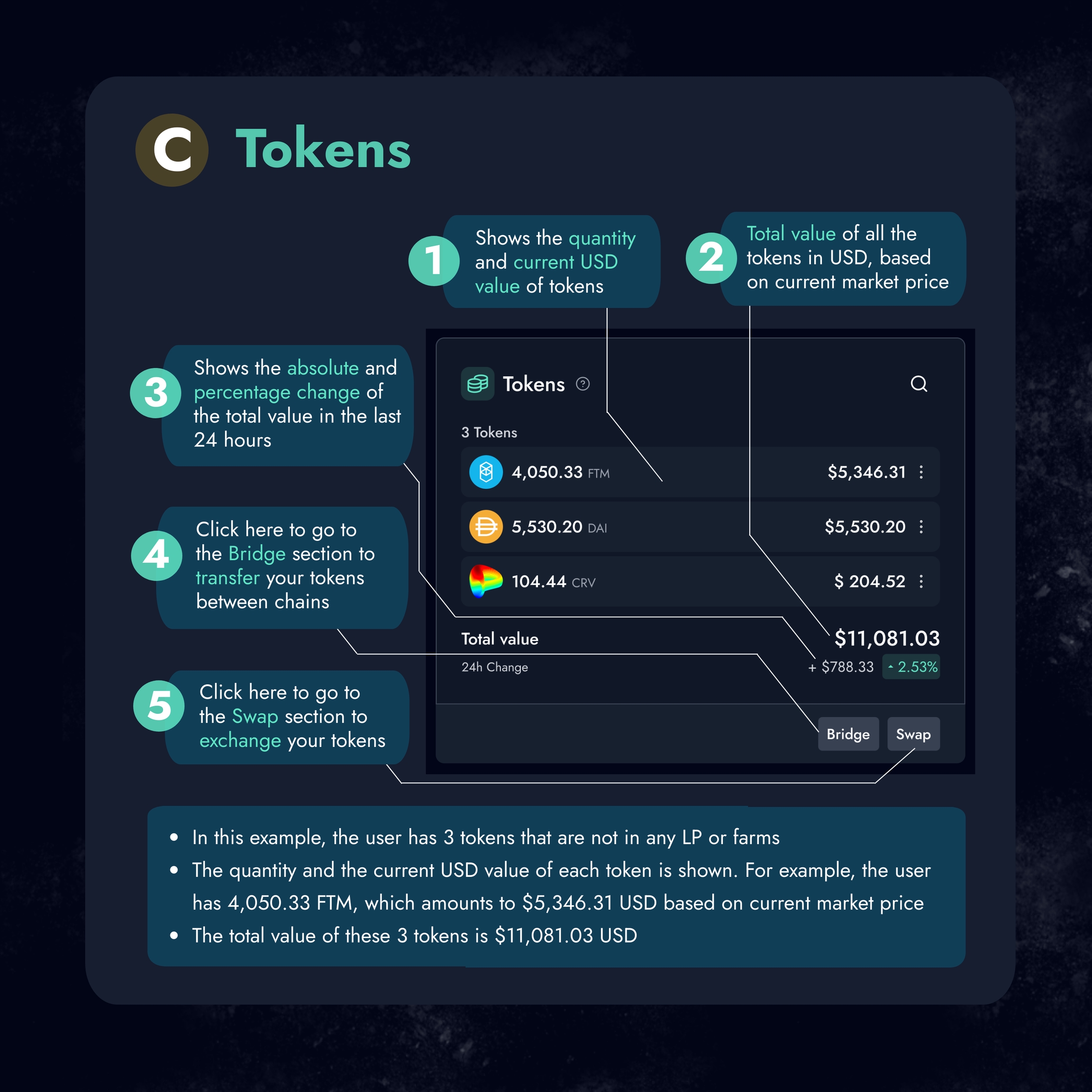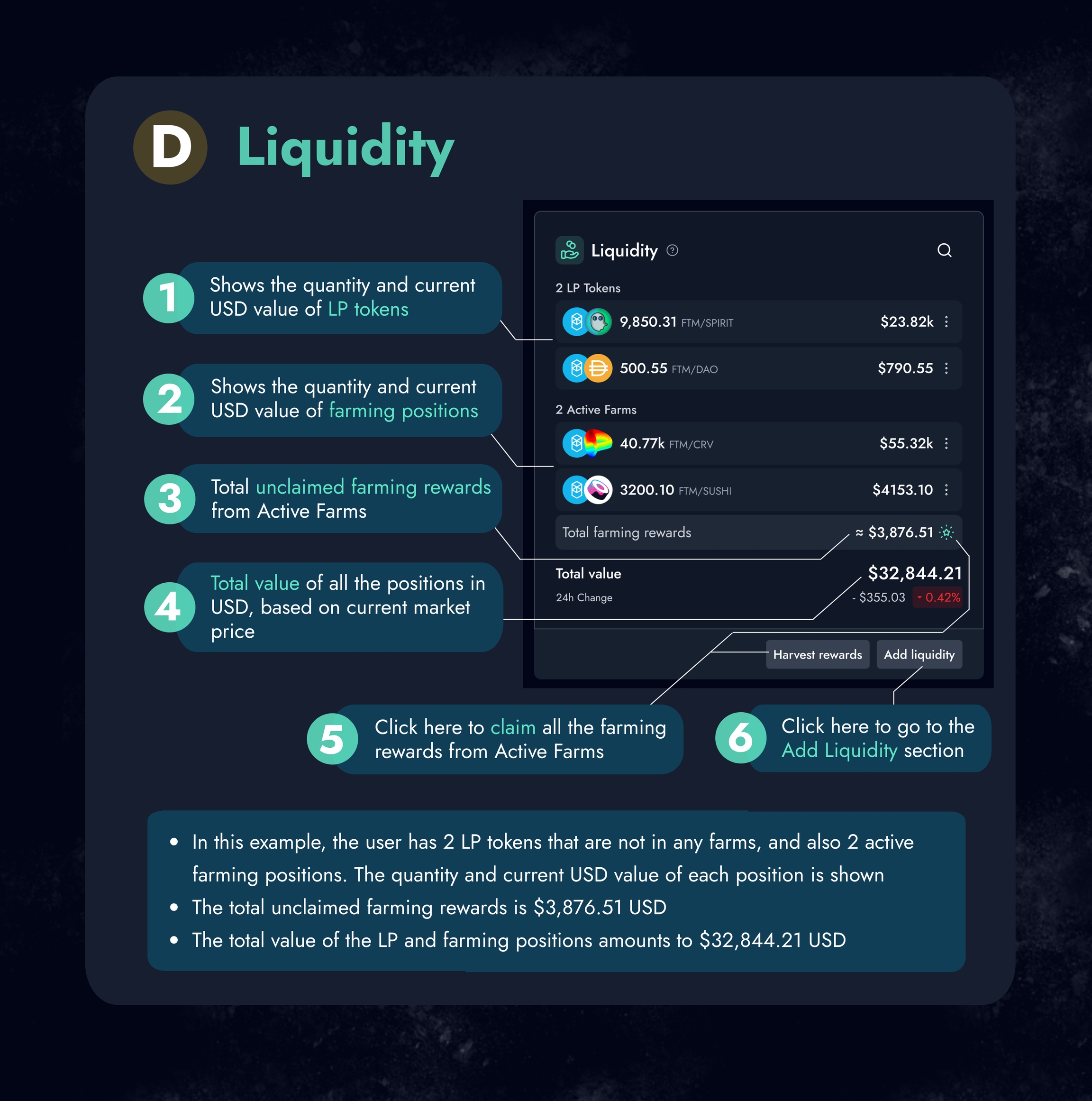 Great, you have bridged assets, deployed an LP, are yield farming and you have taken a position with inSPIRIT. This section now covers our Dashboard & portfolio overview for position tracking.