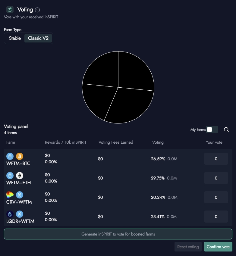On the inSPIRIT page, you will be able to see the voting box . Here you can enter in the percentage weights you want to wards the farms.