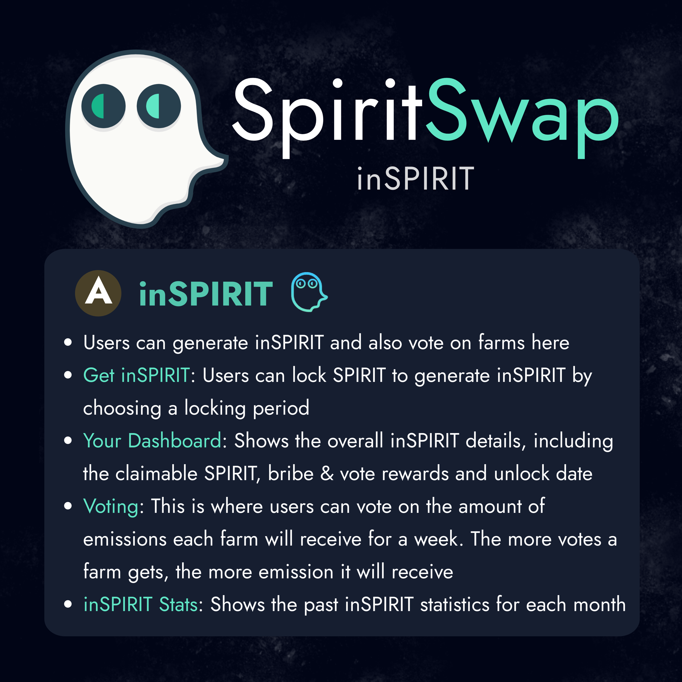 Amazing, your now a yield farmer on SpiritSwap. This section covers how to utilize the SPIRIT tokens you earn in order to SUPERCHARGE your rewards, read onto dive down the rabbit hole.