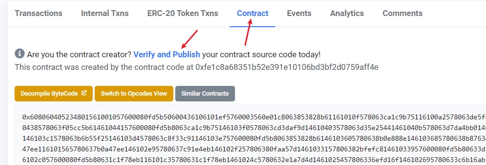 3) For the code, you can go to an existing verified Gauge, like this. Go to code tab and copy the 'Contract Source Code'.