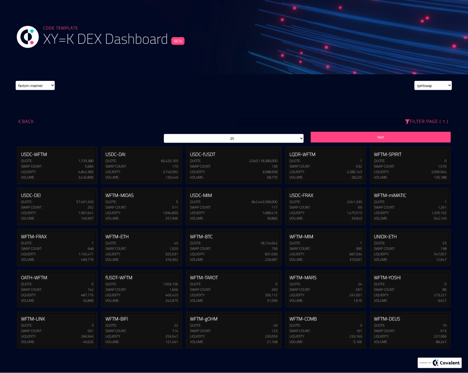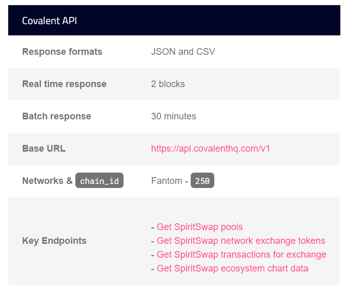 This page gives a walk through for developers wanting to pull data feeds from SpiritSwap directly using Covalent's API.