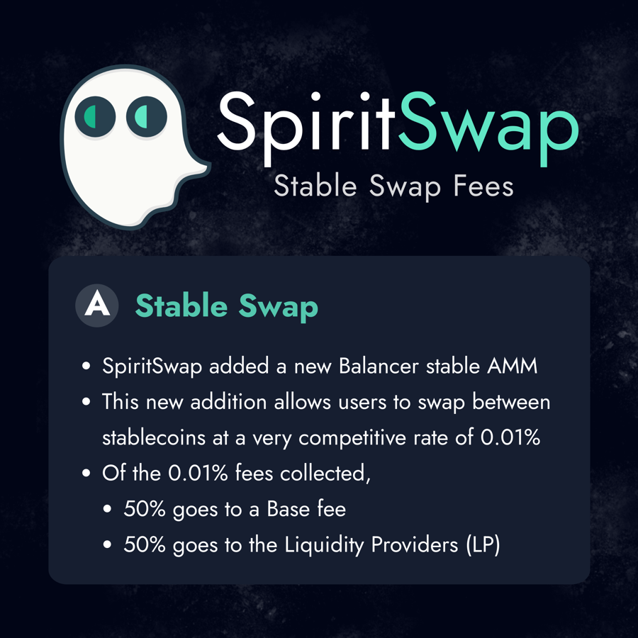 The base fee is exactly the same as the current inSPIRIT distribution. This means inSPIRIT holders will be receiving 50 % of all fees collected from stable swaps.
